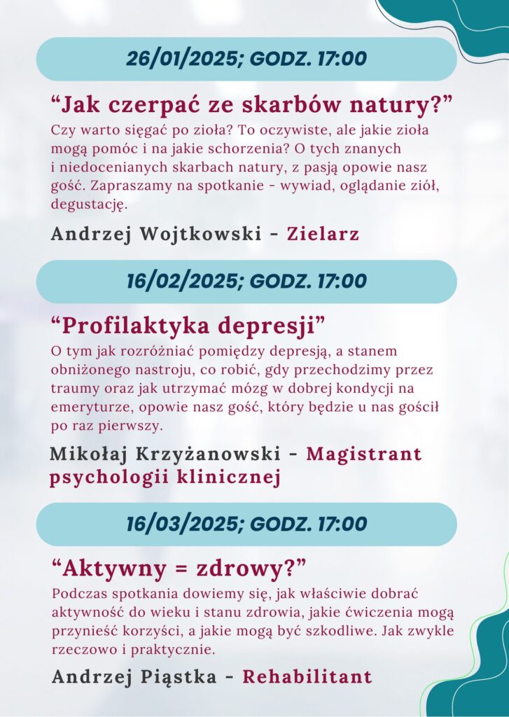 Program pt. „Druga młodość po 65 roku życia”, poprowadzi: Magistrant psychologii klinicznej Mikołaj Krzyżanowski.